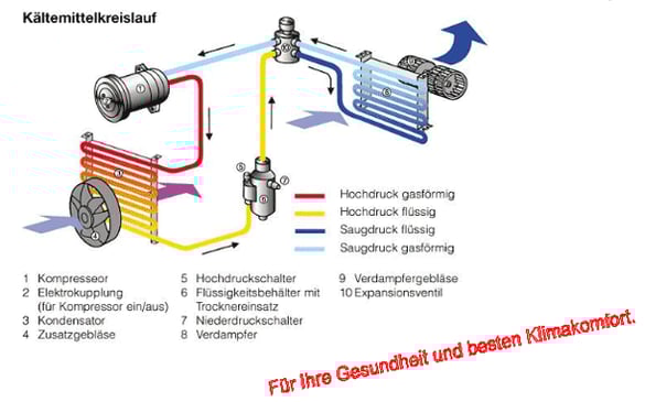 Jährlich gehen bis zu 15 % des Kältemittels aus dem System der Klimaanlage durch Schläuche und Verbindungselemente verloren. Dadurch lässt die Kühlleistung schon nach zwei bis drei Jahren spürbar nach. Sinkt die Füllmenge des Kältemittels und damit auch der Systemdruck unter einen bestimmten Wert, dann kann das Klimasystem erheblichen Schaden nehmen und löst somit die Notabschaltung der Anlage aus.